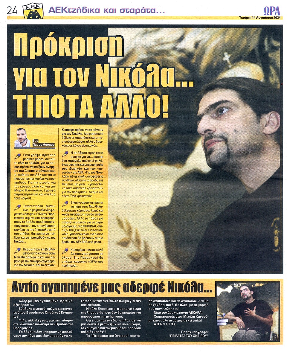 ΑΘΛΗΤΙΚΗ ΩΡΑ ΤΩΝ ΣΠΟΡ - 14 Αυγούστου 2024