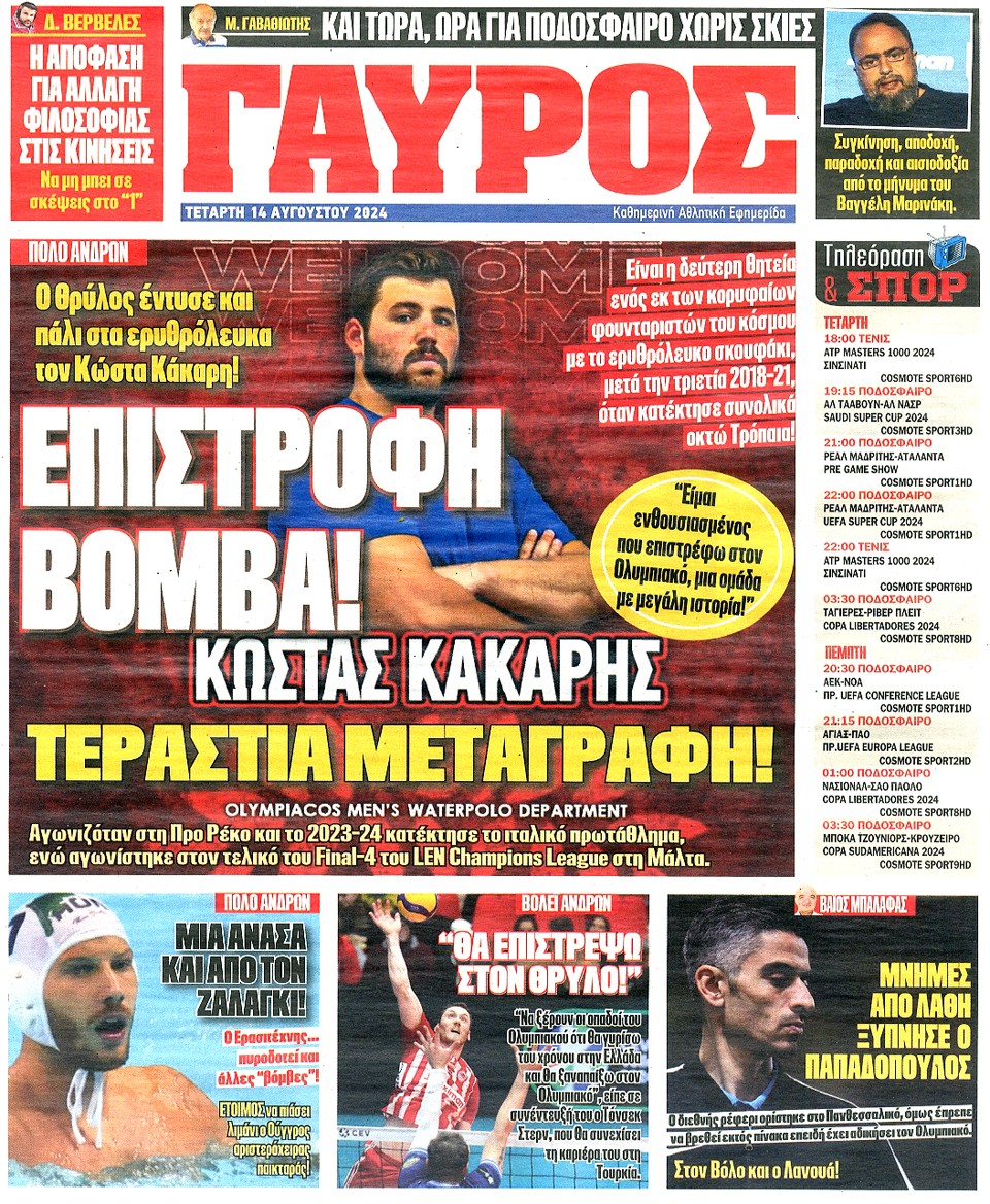 ΠΡΩΤΑΘΛΗΤΗΣ - 14 Αυγούστου 2024