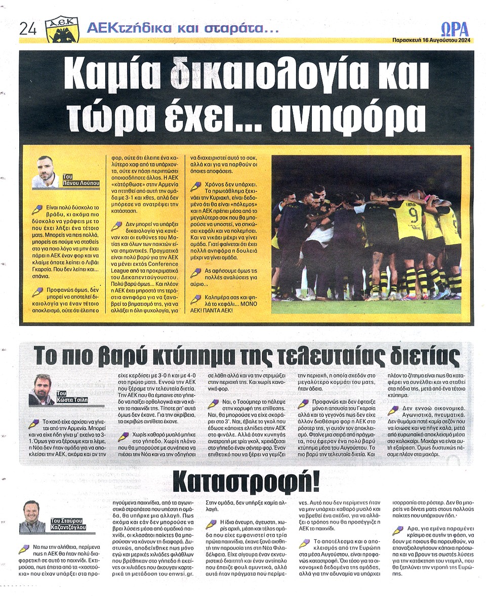 ΑΘΛΗΤΙΚΗ ΩΡΑ ΤΩΝ ΣΠΟΡ - 16 Αυγούστου 2024