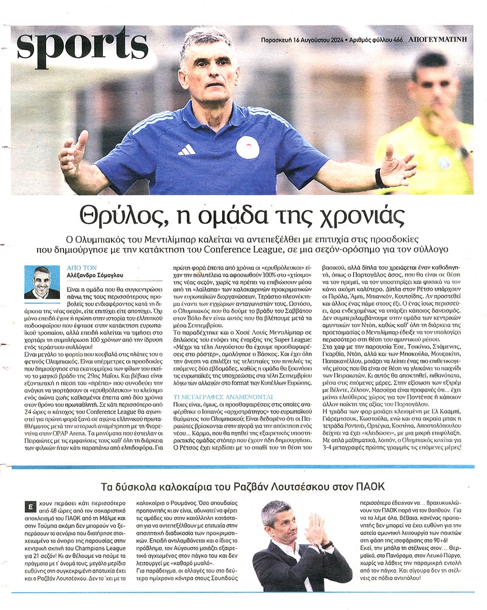 ΑΠΟΓΕΥΜΑΤΙΝΗ - 16 Αυγούστου 2024