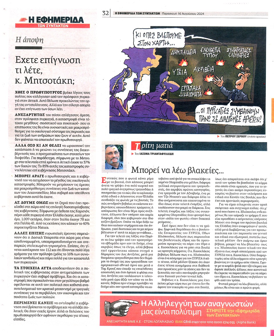Η ΕΦΗΜΕΡΙΔΑ ΤΩΝ ΣΥΝΤΑΚΤΩΝ - 16 Αυγούστου 2024