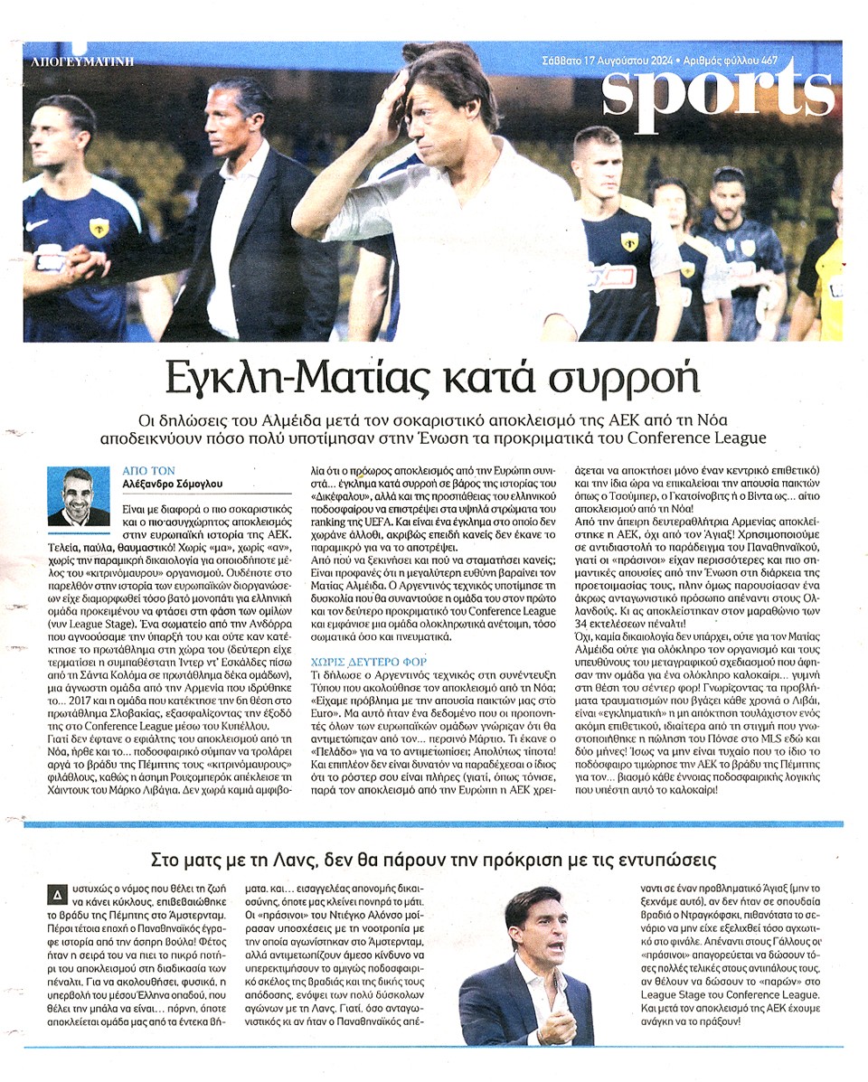 ΑΠΟΓΕΥΜΑΤΙΝΗ - 17 Αυγούστου 2024