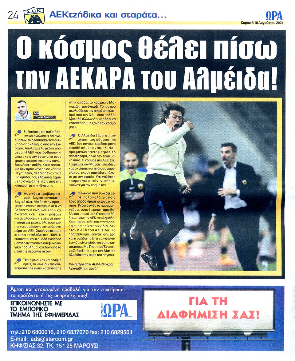 ΑΘΛΗΤΙΚΗ ΩΡΑ ΤΩΝ ΣΠΟΡ - 18 Αυγούστου 2024