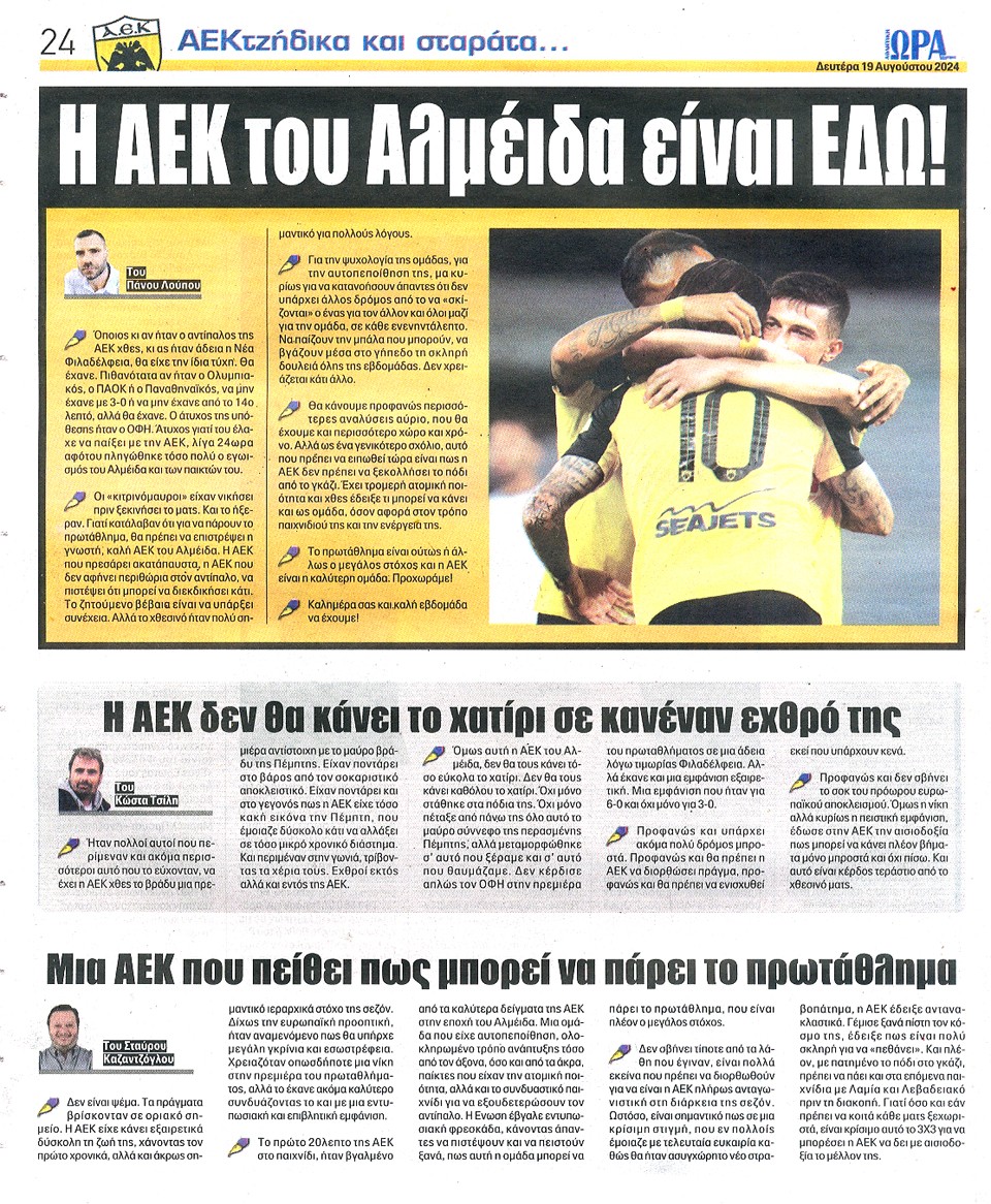 ΑΘΛΗΤΙΚΗ ΩΡΑ ΤΩΝ ΣΠΟΡ - 19 Αυγούστου 2024