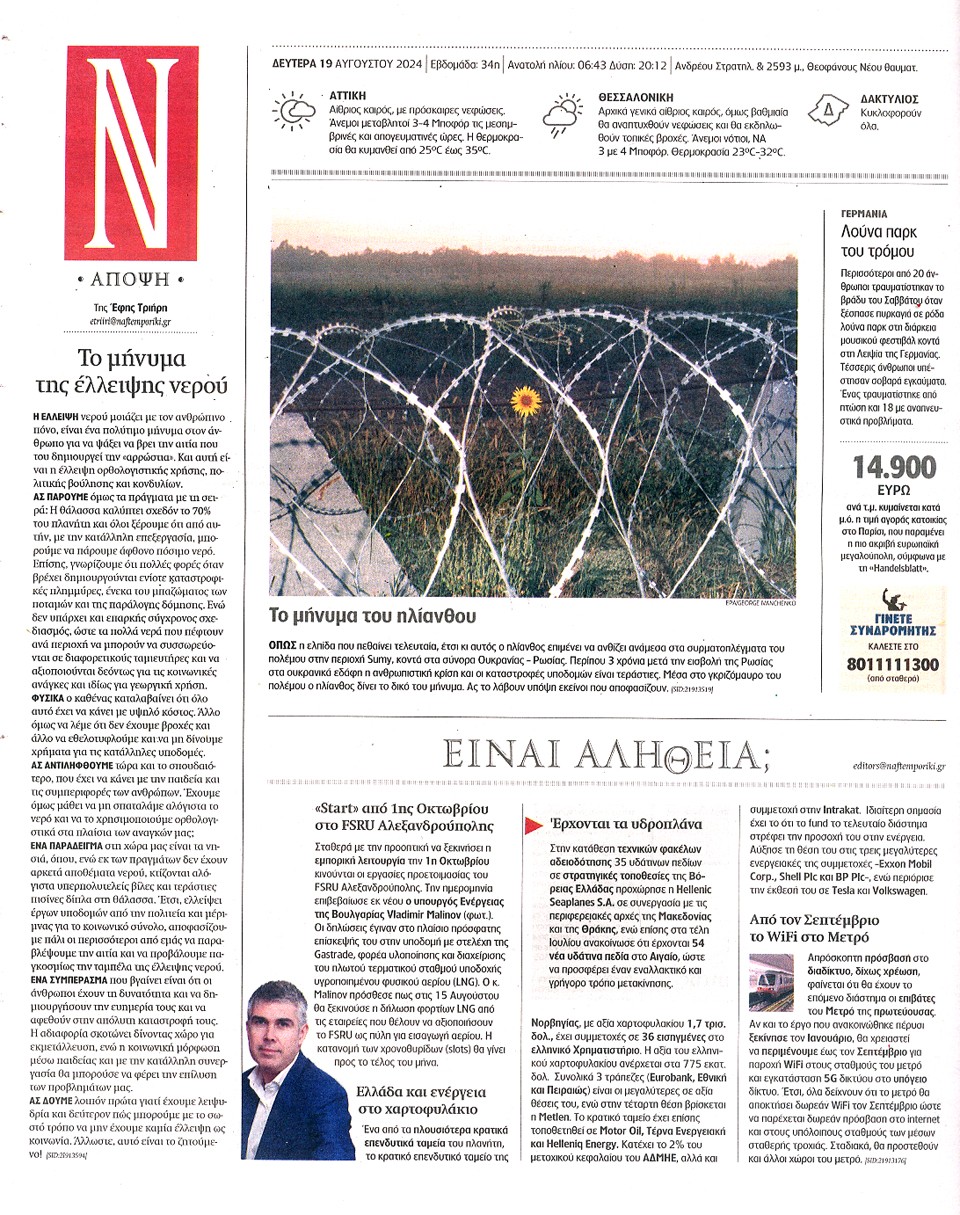 ΝΑΥΤΕΜΠΟΡΙΚΗ - 19 Αυγούστου 2024