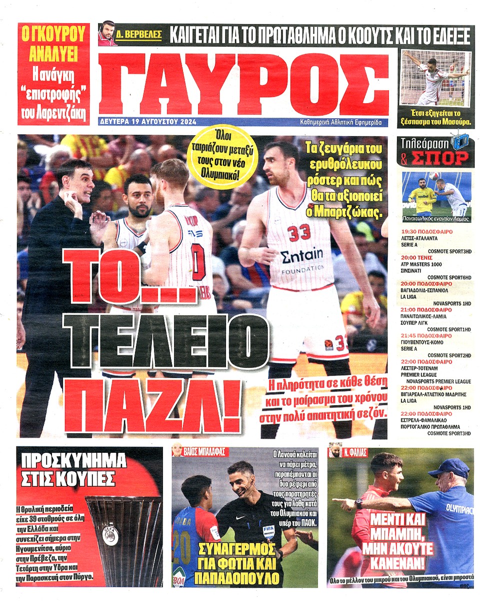 ΠΡΩΤΑΘΛΗΤΗΣ - 19 Αυγούστου 2024
