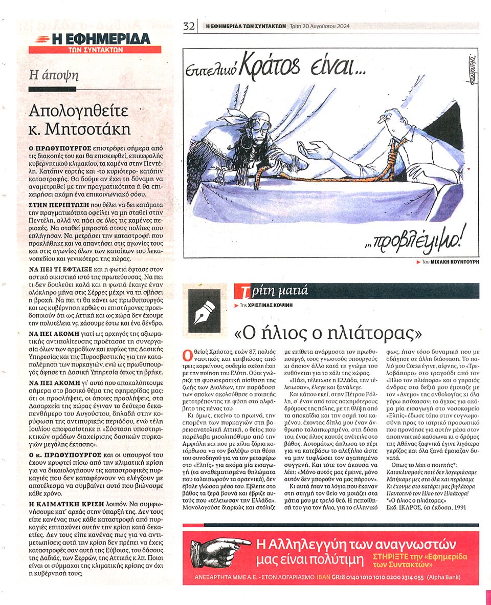 Η ΕΦΗΜΕΡΙΔΑ ΤΩΝ ΣΥΝΤΑΚΤΩΝ - 20 Αυγούστου 2024