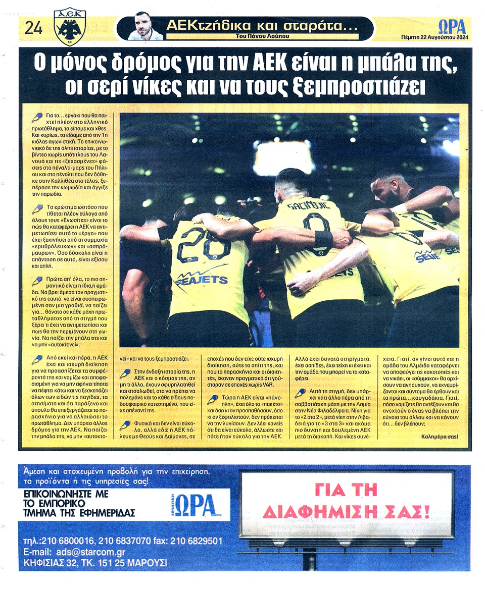 ΑΘΛΗΤΙΚΗ ΩΡΑ ΤΩΝ ΣΠΟΡ - 22 Αυγούστου 2024