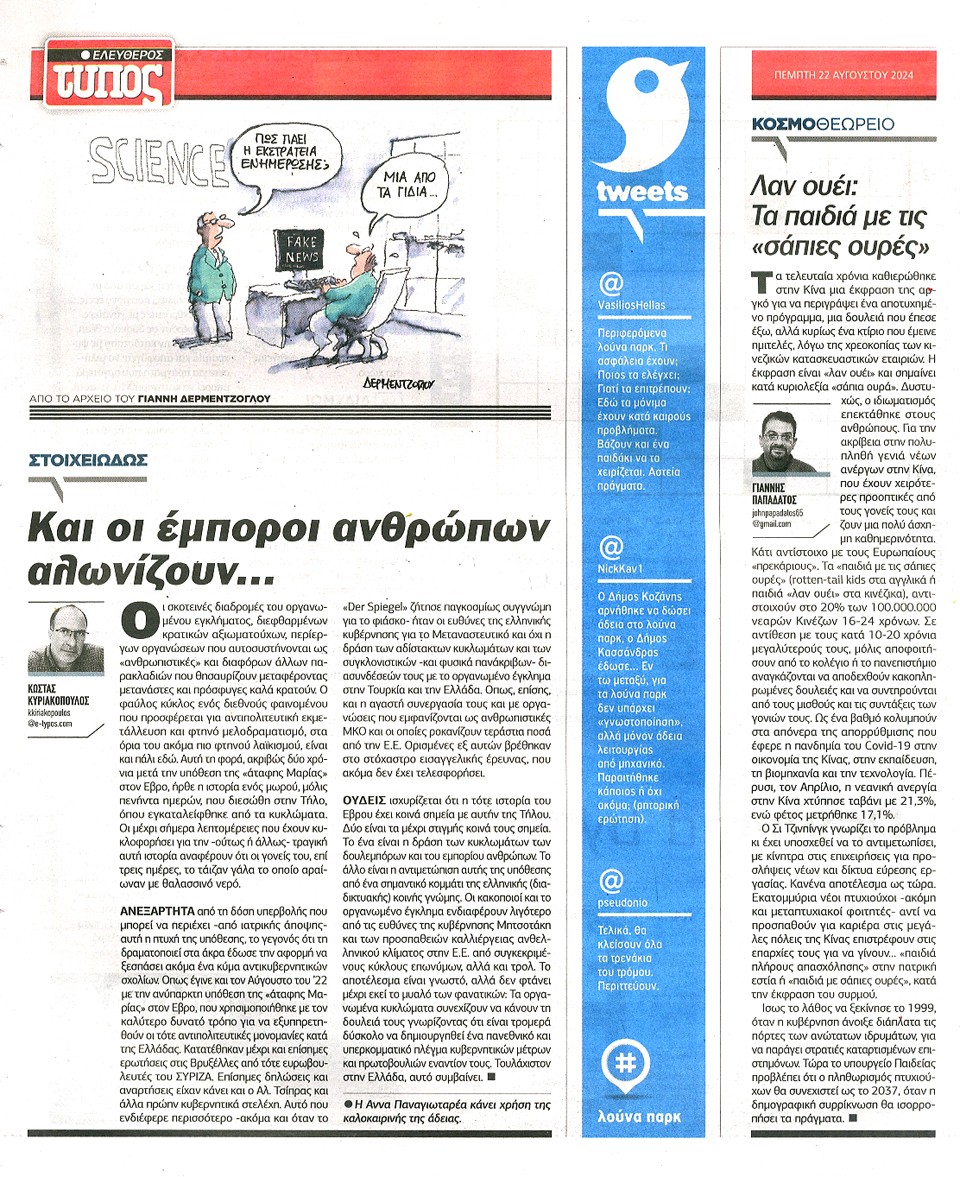 ΕΛΕΥΘΕΡΟΣ ΤΥΠΟΣ - 22 Αυγούστου 2024