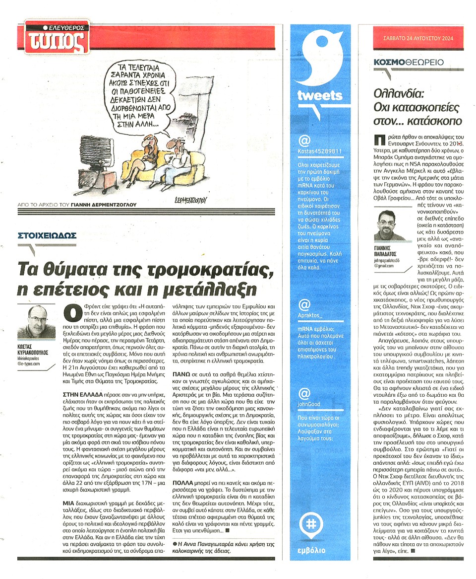ΕΛΕΥΘΕΡΟΣ ΤΥΠΟΣ - 24 Αυγούστου 2024