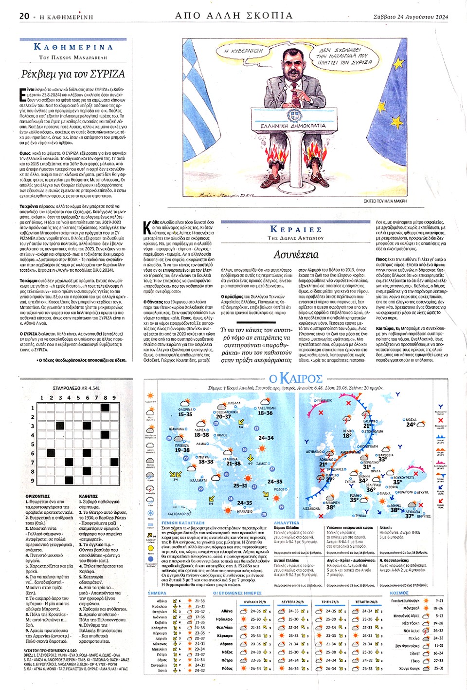 ΚΑΘΗΜΕΡΙΝΗ - 24 Αυγούστου 2024