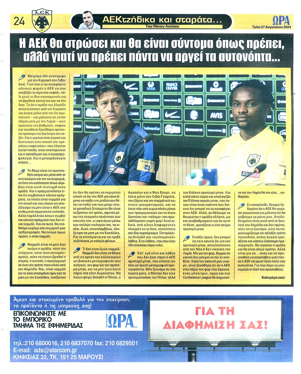ΑΘΛΗΤΙΚΗ ΩΡΑ ΤΩΝ ΣΠΟΡ - 27 Αυγούστου 2024