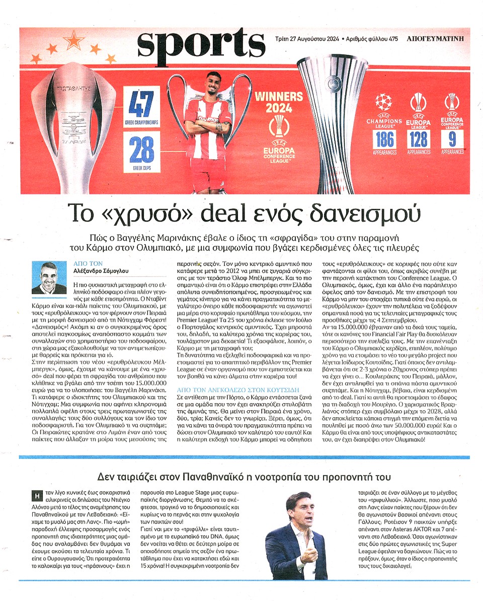 ΑΠΟΓΕΥΜΑΤΙΝΗ - 27 Αυγούστου 2024
