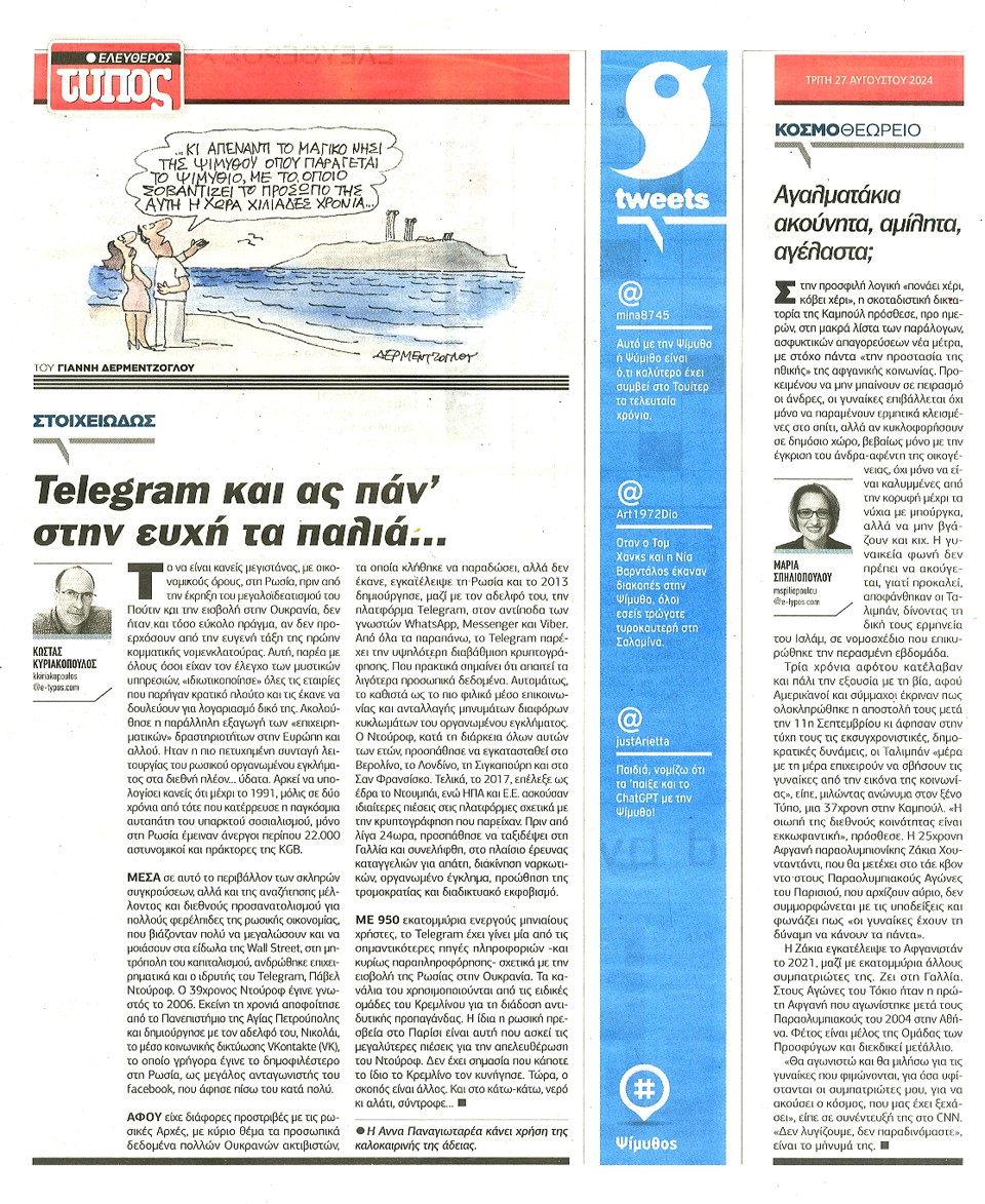 ΕΛΕΥΘΕΡΟΣ ΤΥΠΟΣ - 27 Αυγούστου 2024
