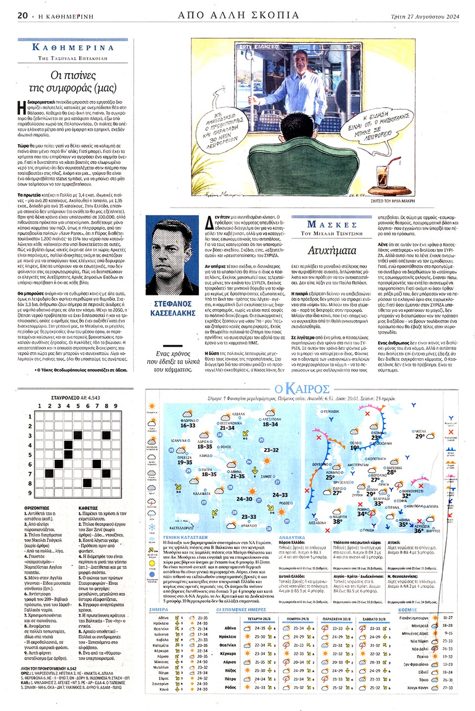 ΚΑΘΗΜΕΡΙΝΗ - 27 Αυγούστου 2024