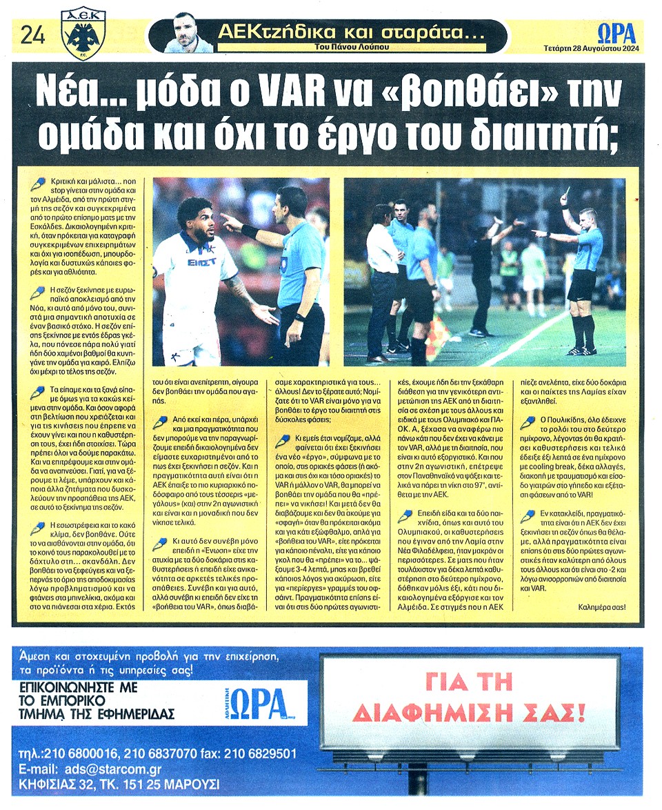 ΑΘΛΗΤΙΚΗ ΩΡΑ ΤΩΝ ΣΠΟΡ - 28 Αυγούστου 2024