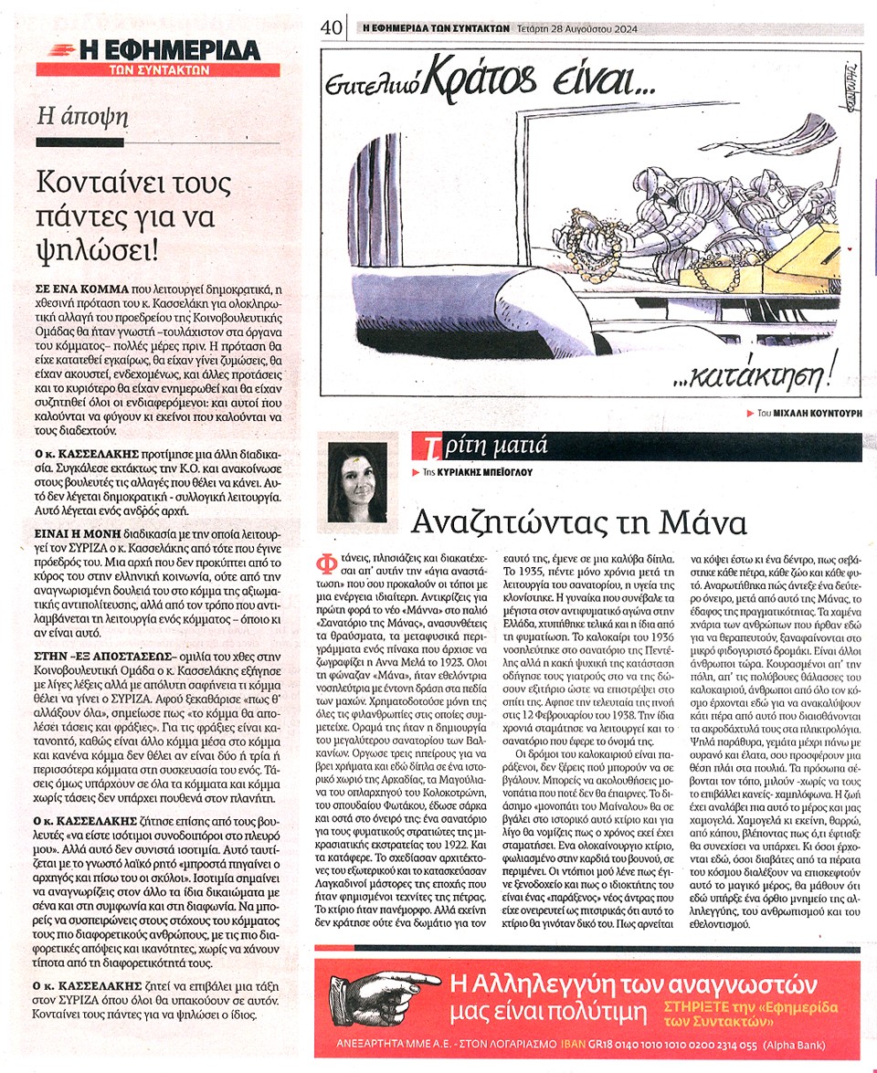 Η ΕΦΗΜΕΡΙΔΑ ΤΩΝ ΣΥΝΤΑΚΤΩΝ - 28 Αυγούστου 2024
