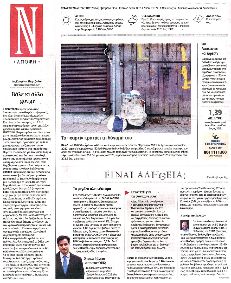 ΝΑΥΤΕΜΠΟΡΙΚΗ - 28 Αυγούστου 2024