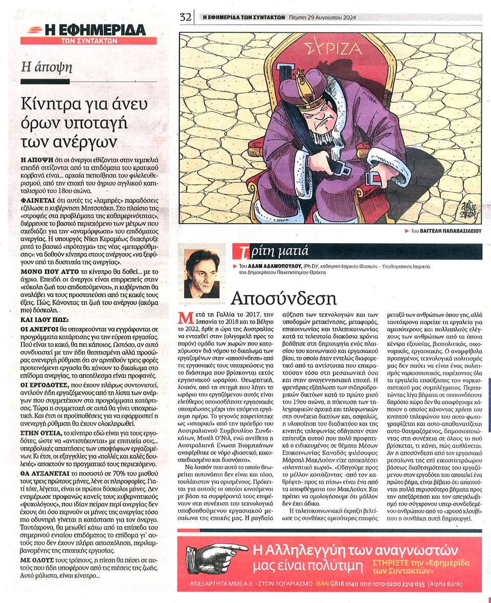 Η ΕΦΗΜΕΡΙΔΑ ΤΩΝ ΣΥΝΤΑΚΤΩΝ - 29 Αυγούστου 2024