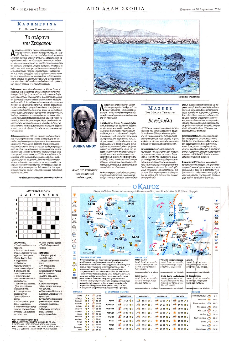 ΚΑΘΗΜΕΡΙΝΗ - 30 Αυγούστου 2024