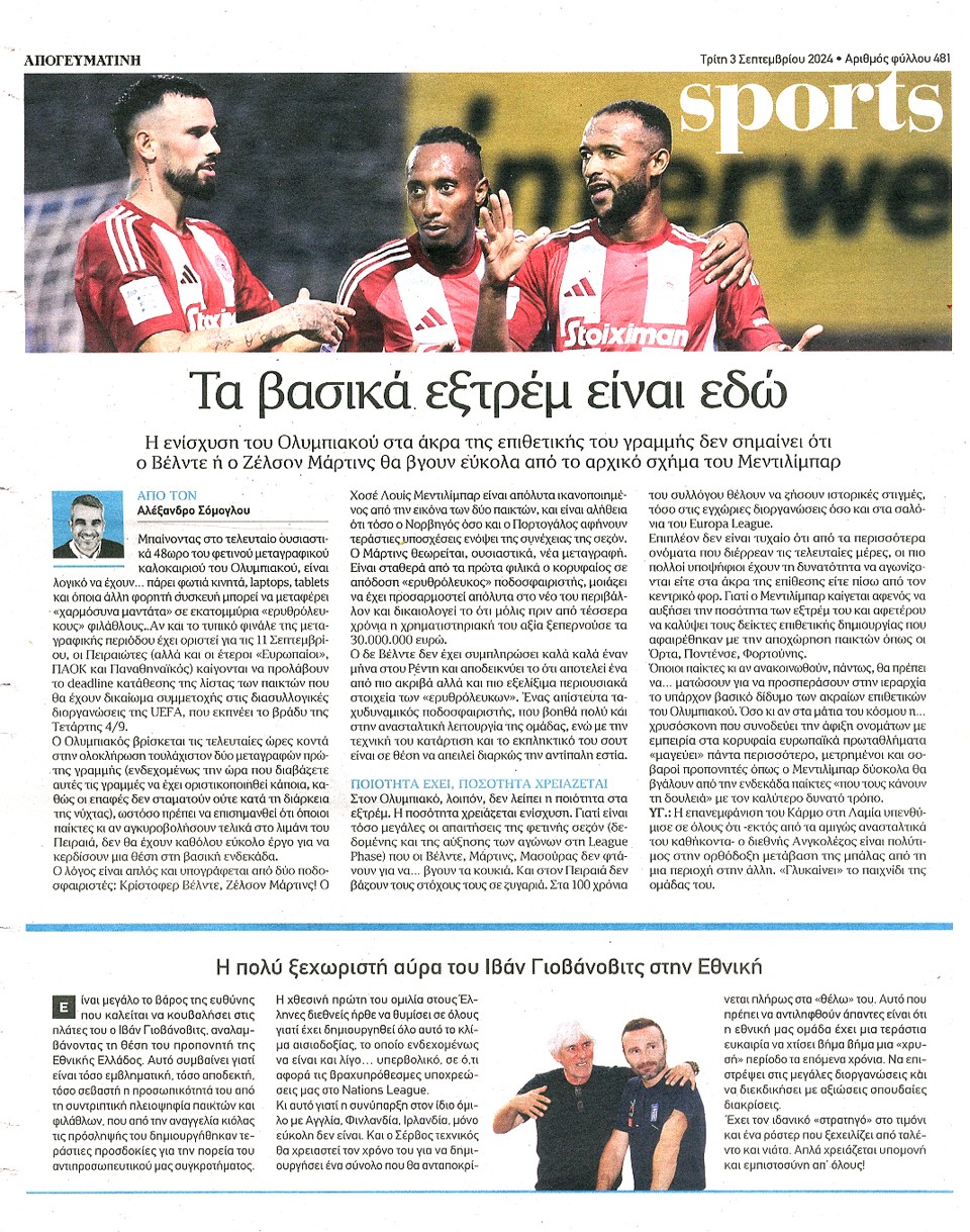 ΑΠΟΓΕΥΜΑΤΙΝΗ - 03 Σεπτεμβρίου 2024