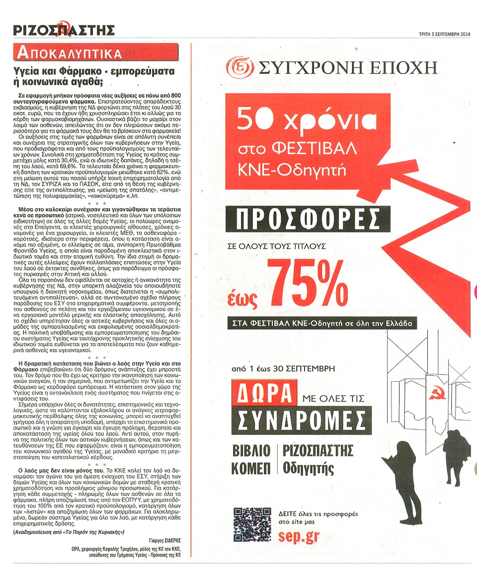 ΡΙΖΟΣΠΑΣΤΗΣ - 03 Σεπτεμβρίου 2024