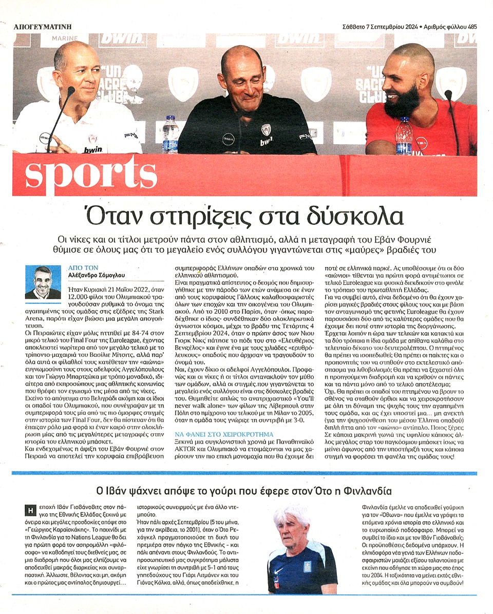 ΑΠΟΓΕΥΜΑΤΙΝΗ - 07 Σεπτεμβρίου 2024
