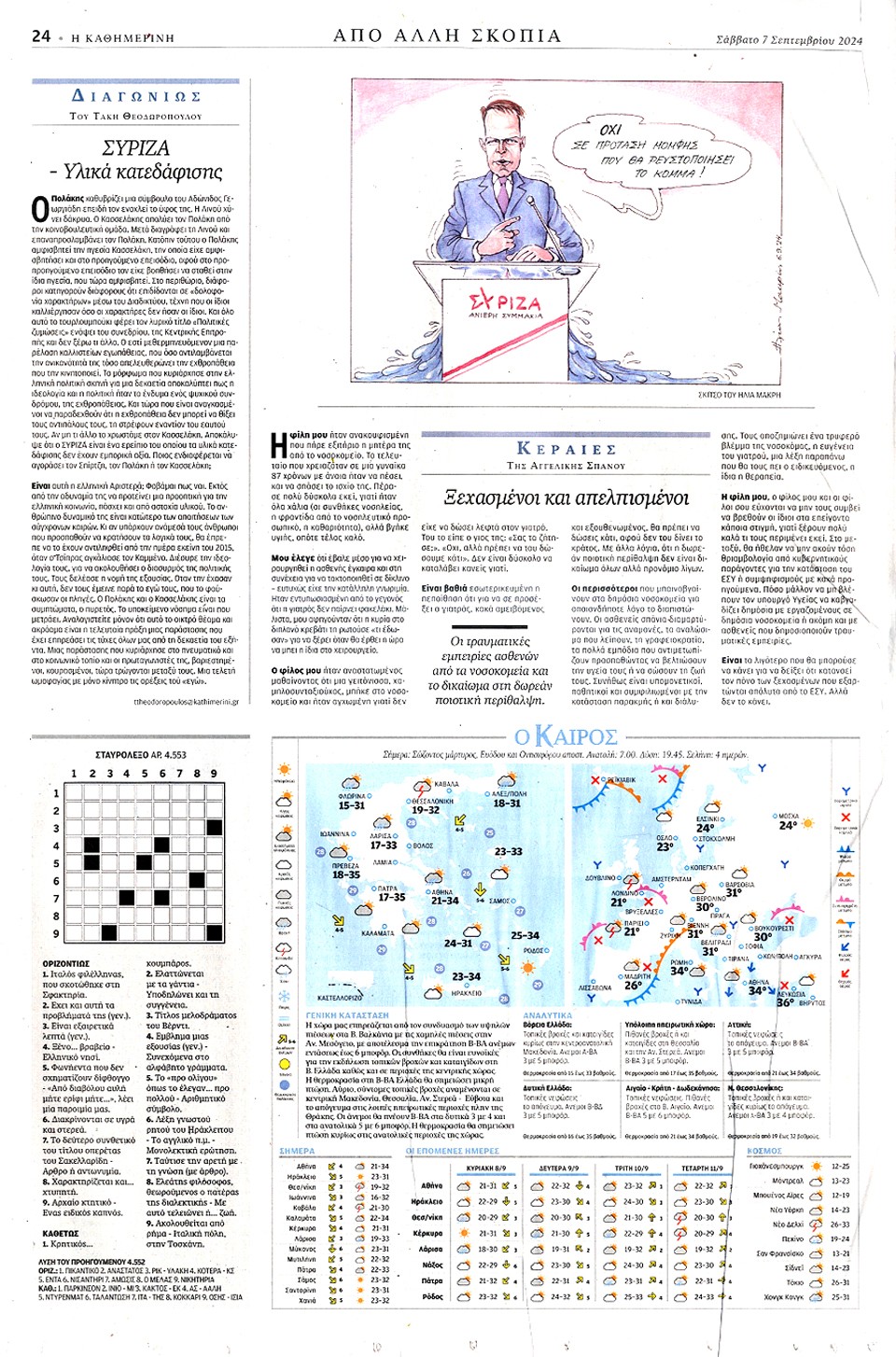 ΚΑΘΗΜΕΡΙΝΗ - 07 Σεπτεμβρίου 2024