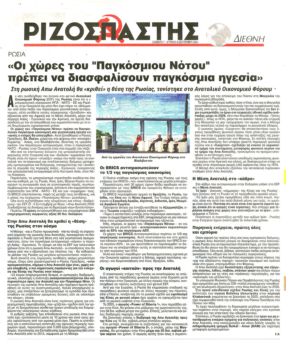 ΡΙΖΟΣΠΑΣΤΗΣ ΤΗΣ ΚΥΡΙΑΚΗΣ - 07 Σεπτεμβρίου 2024