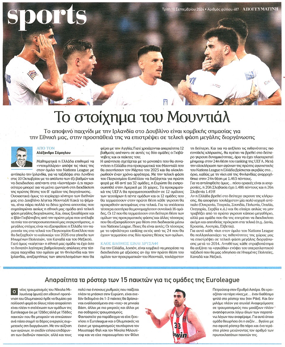 ΑΠΟΓΕΥΜΑΤΙΝΗ - 10 Σεπτεμβρίου 2024