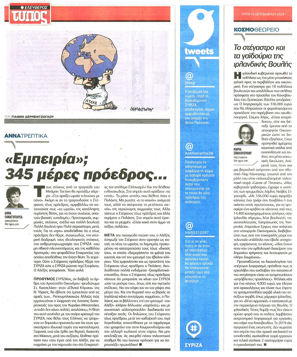 ΕΛΕΥΘΕΡΟΣ ΤΥΠΟΣ - 10 Σεπτεμβρίου 2024
