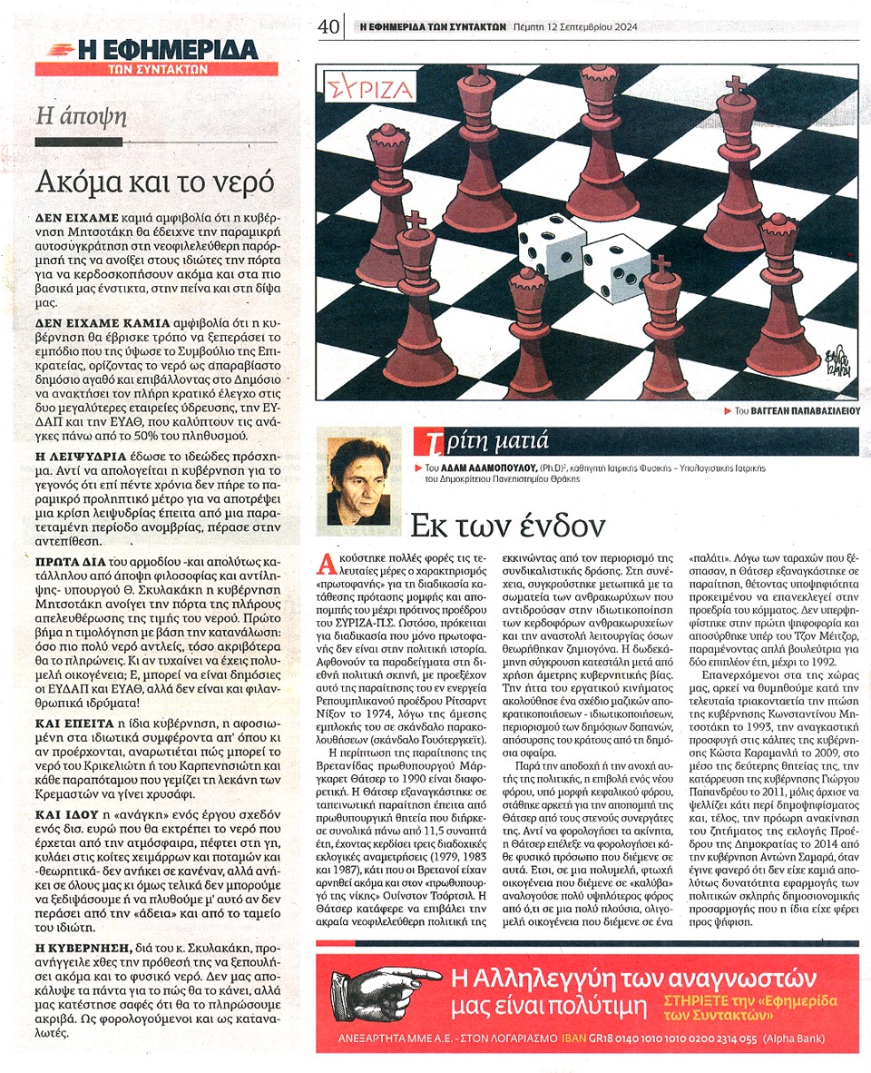 Η ΕΦΗΜΕΡΙΔΑ ΤΩΝ ΣΥΝΤΑΚΤΩΝ - 12 Σεπτεμβρίου 2024