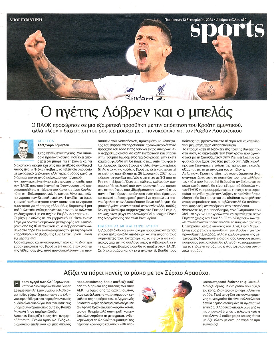 ΑΠΟΓΕΥΜΑΤΙΝΗ - 13 Σεπτεμβρίου 2024
