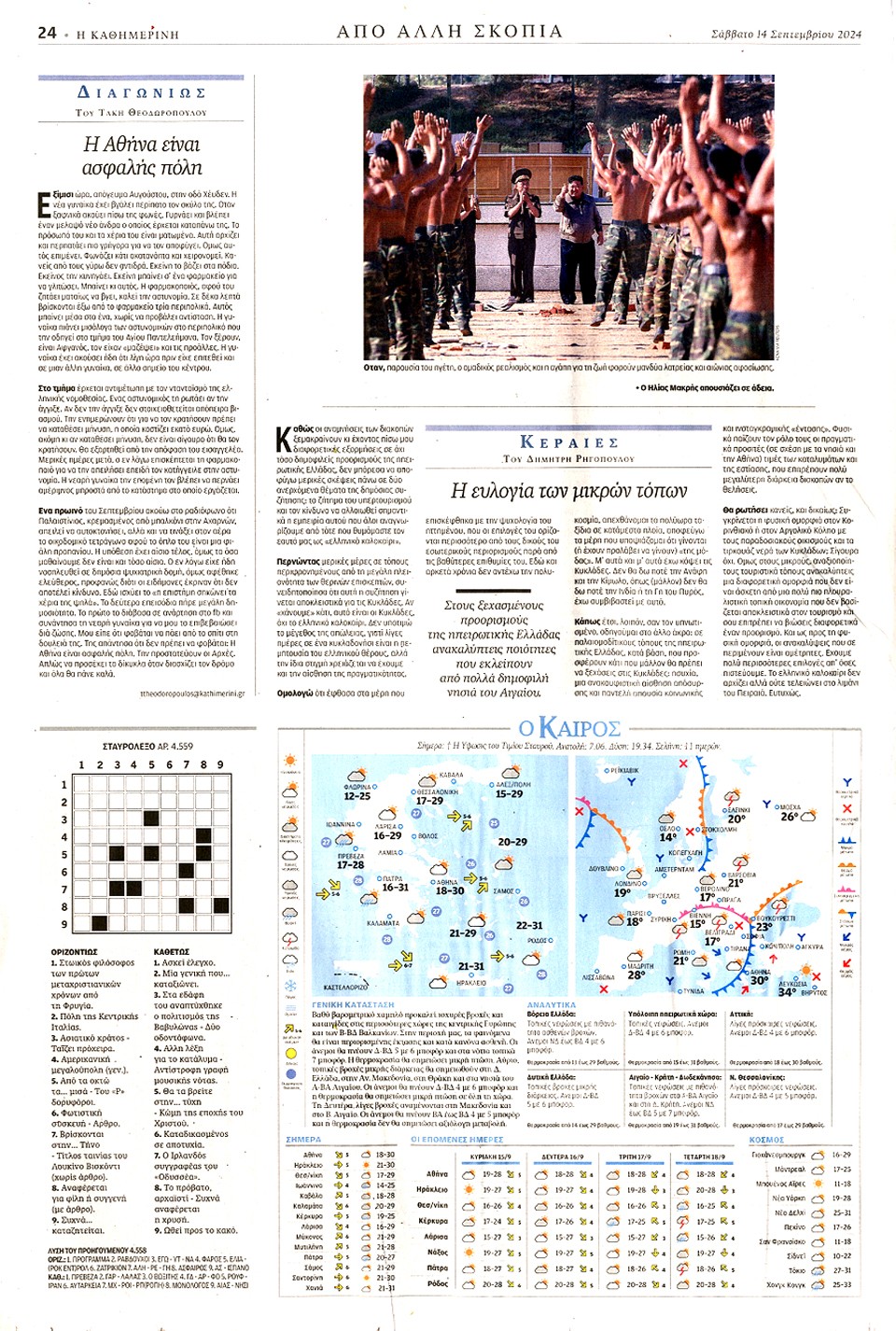 ΚΑΘΗΜΕΡΙΝΗ - 14 Σεπτεμβρίου 2024
