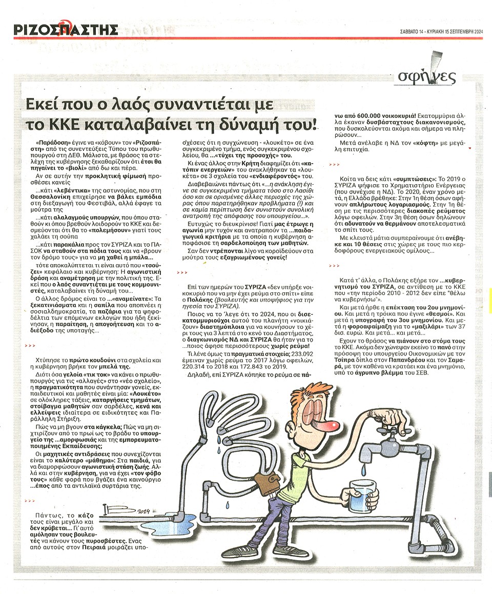 ΡΙΖΟΣΠΑΣΤΗΣ ΤΗΣ ΚΥΡΙΑΚΗΣ - 14 Σεπτεμβρίου 2024