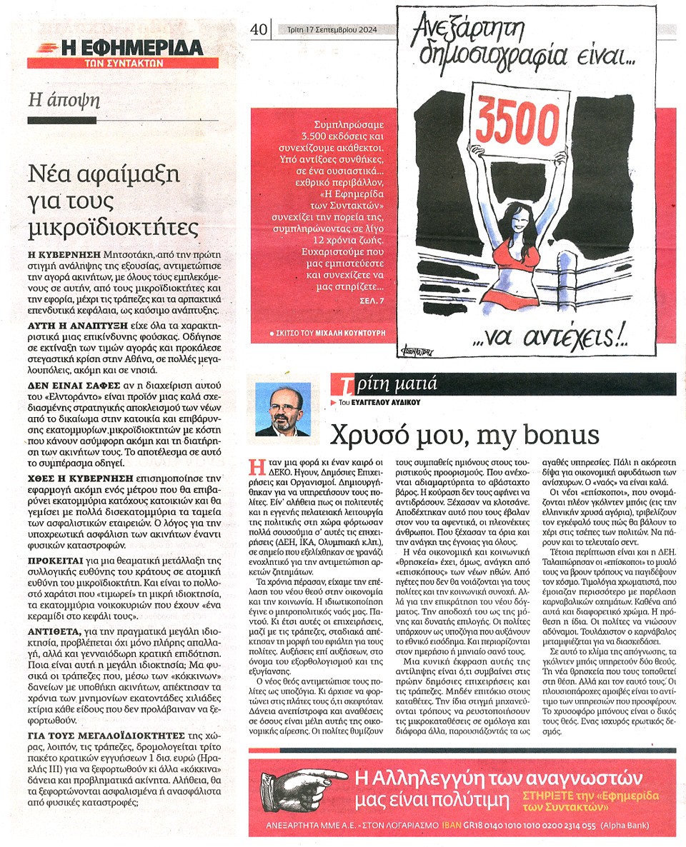 Η ΕΦΗΜΕΡΙΔΑ ΤΩΝ ΣΥΝΤΑΚΤΩΝ - 17 Σεπτεμβρίου 2024