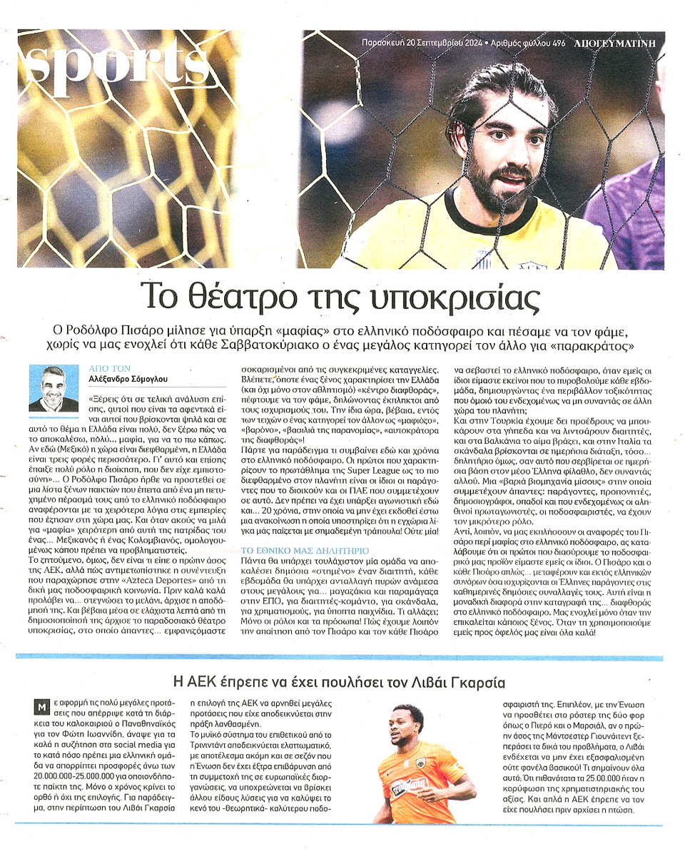 ΑΠΟΓΕΥΜΑΤΙΝΗ - 20 Σεπτεμβρίου 2024