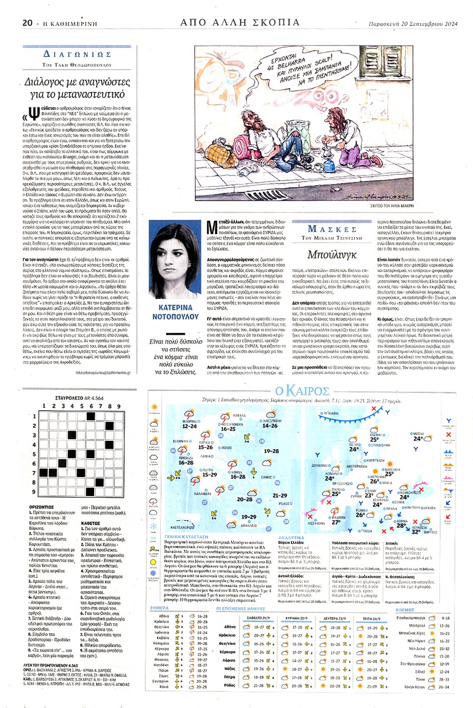 ΚΑΘΗΜΕΡΙΝΗ - 20 Σεπτεμβρίου 2024
