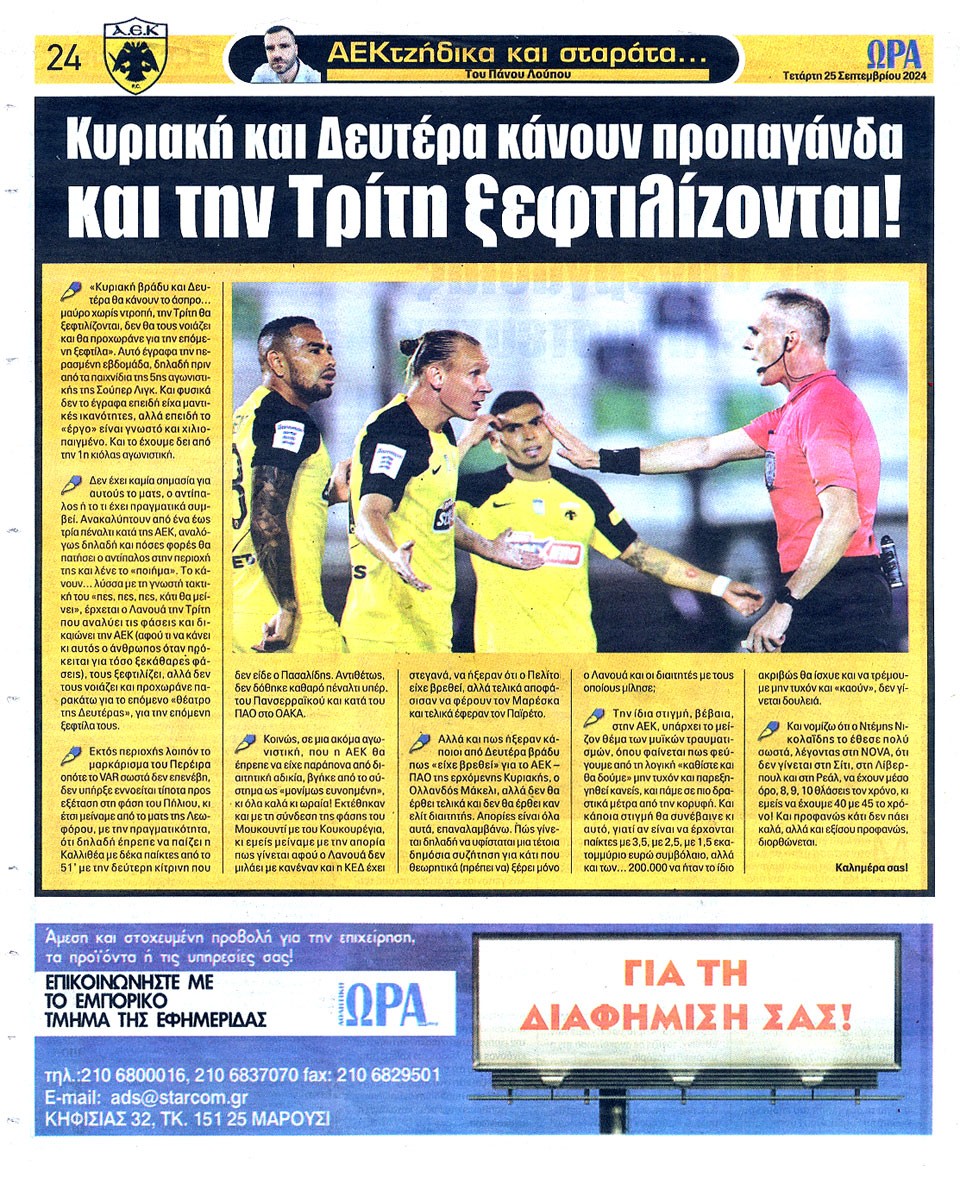ΑΘΛΗΤΙΚΗ ΩΡΑ ΤΩΝ ΣΠΟΡ - 25 Σεπτεμβρίου 2024