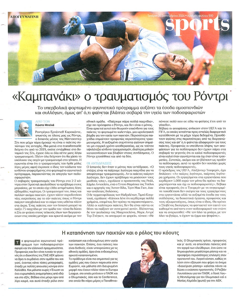 ΑΠΟΓΕΥΜΑΤΙΝΗ - 25 Σεπτεμβρίου 2024