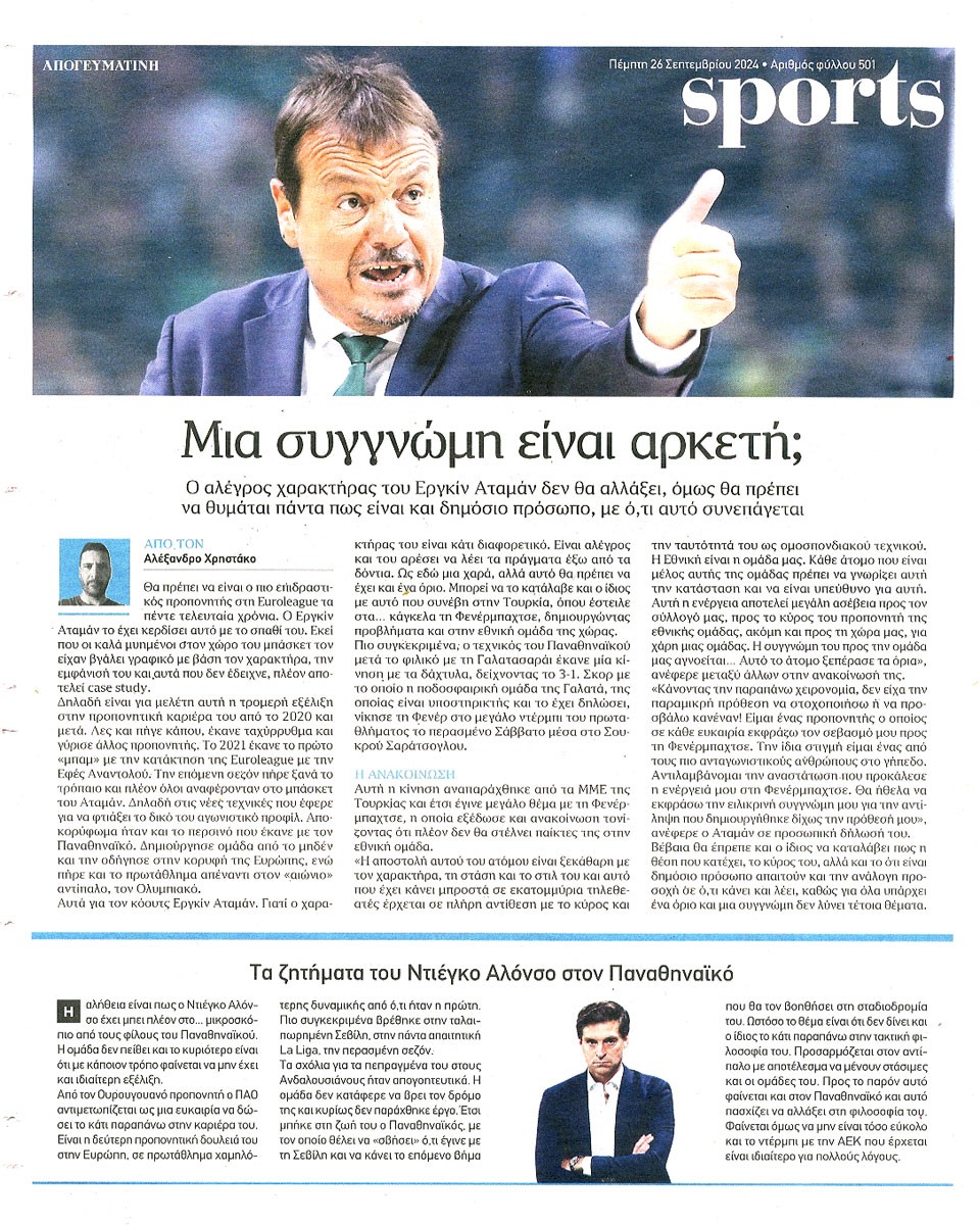 ΑΠΟΓΕΥΜΑΤΙΝΗ - 26 Σεπτεμβρίου 2024