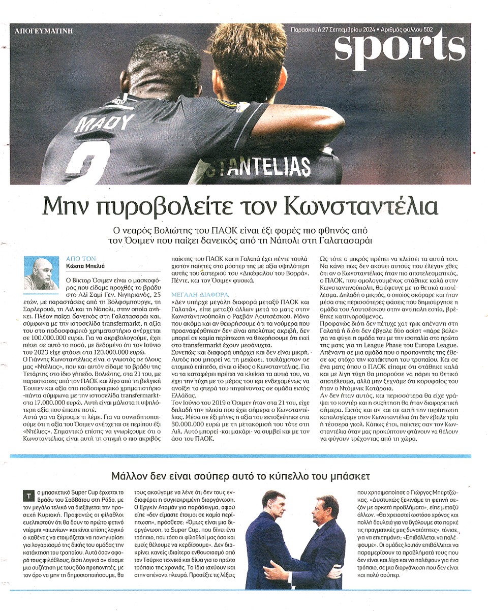 ΑΠΟΓΕΥΜΑΤΙΝΗ - 27 Σεπτεμβρίου 2024