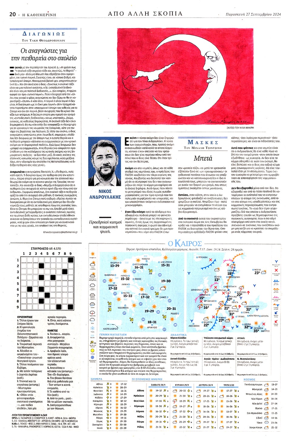 ΚΑΘΗΜΕΡΙΝΗ - 27 Σεπτεμβρίου 2024
