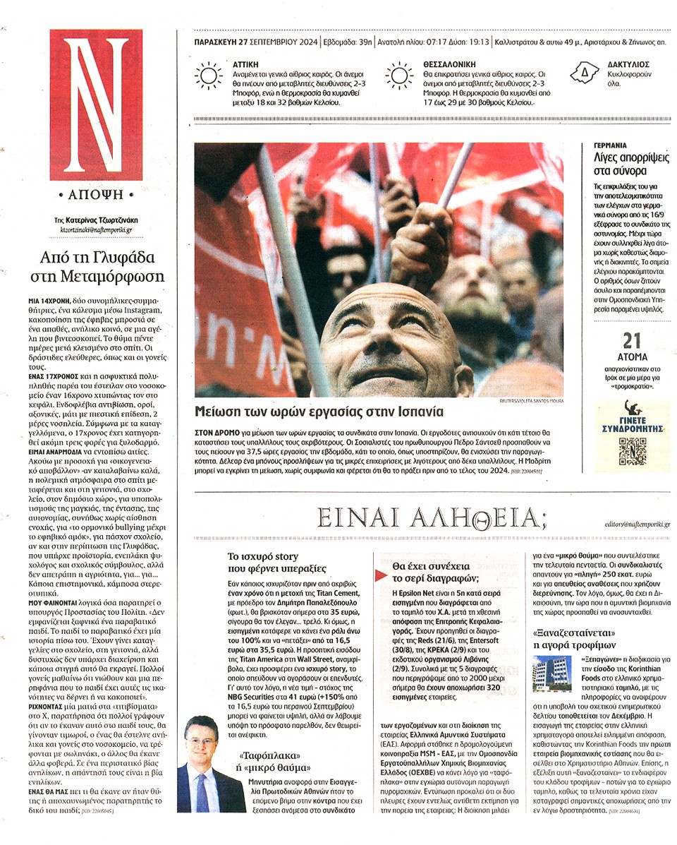ΝΑΥΤΕΜΠΟΡΙΚΗ - 27 Σεπτεμβρίου 2024