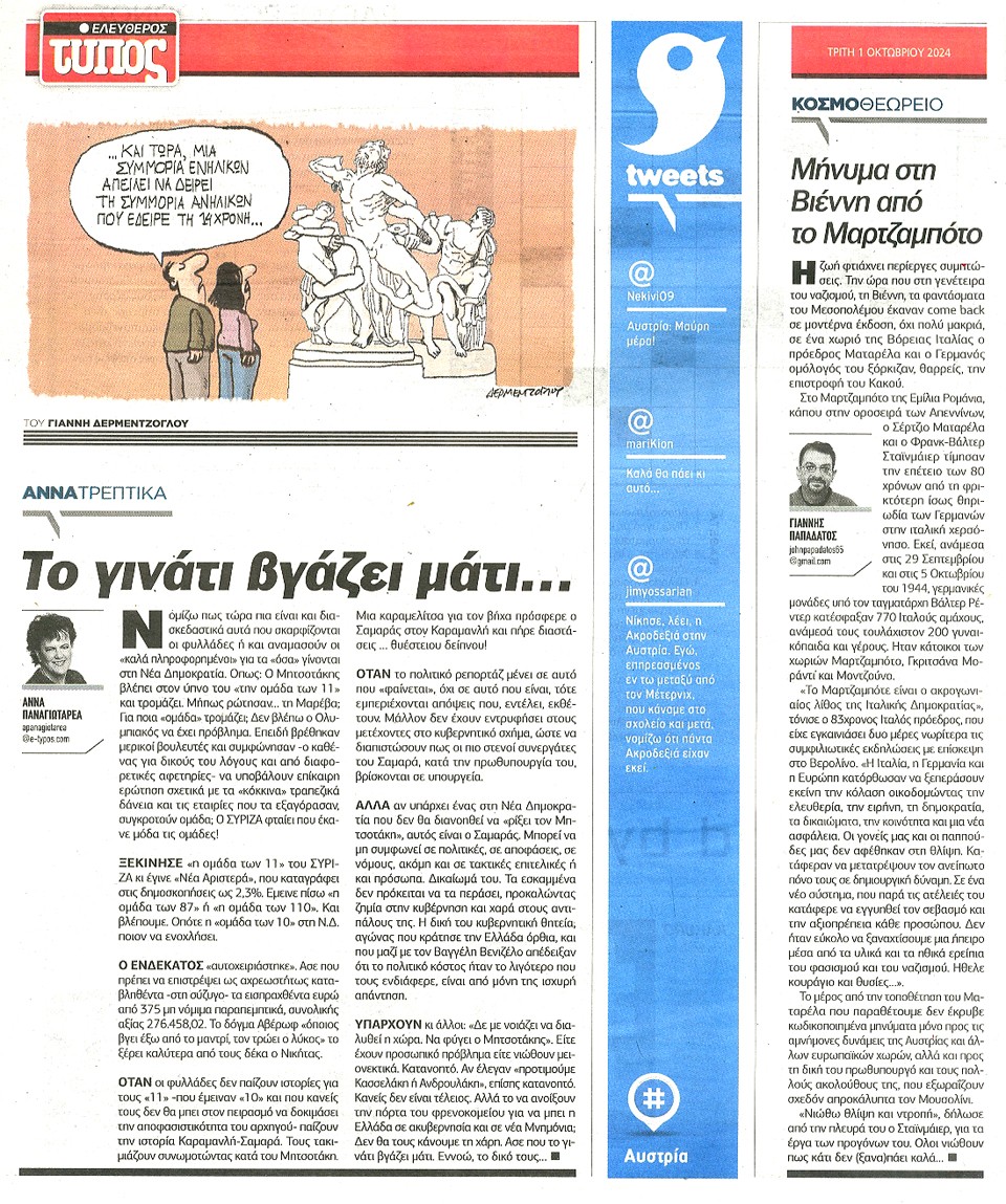 ΕΛΕΥΘΕΡΟΣ ΤΥΠΟΣ - 01 Οκτωβρίου 2024