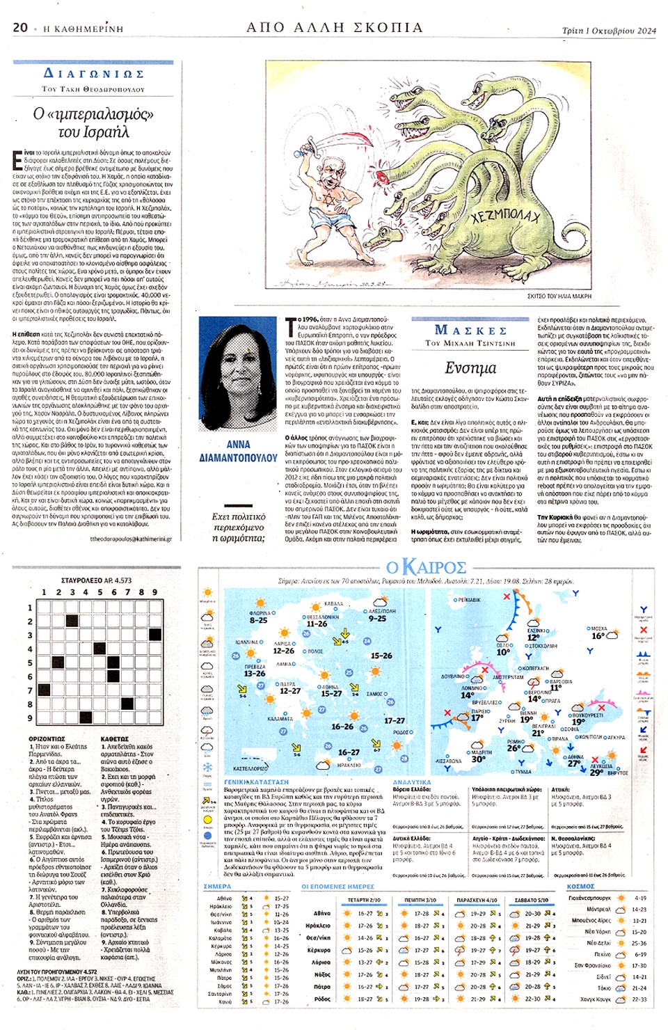 ΚΑΘΗΜΕΡΙΝΗ - 01 Οκτωβρίου 2024