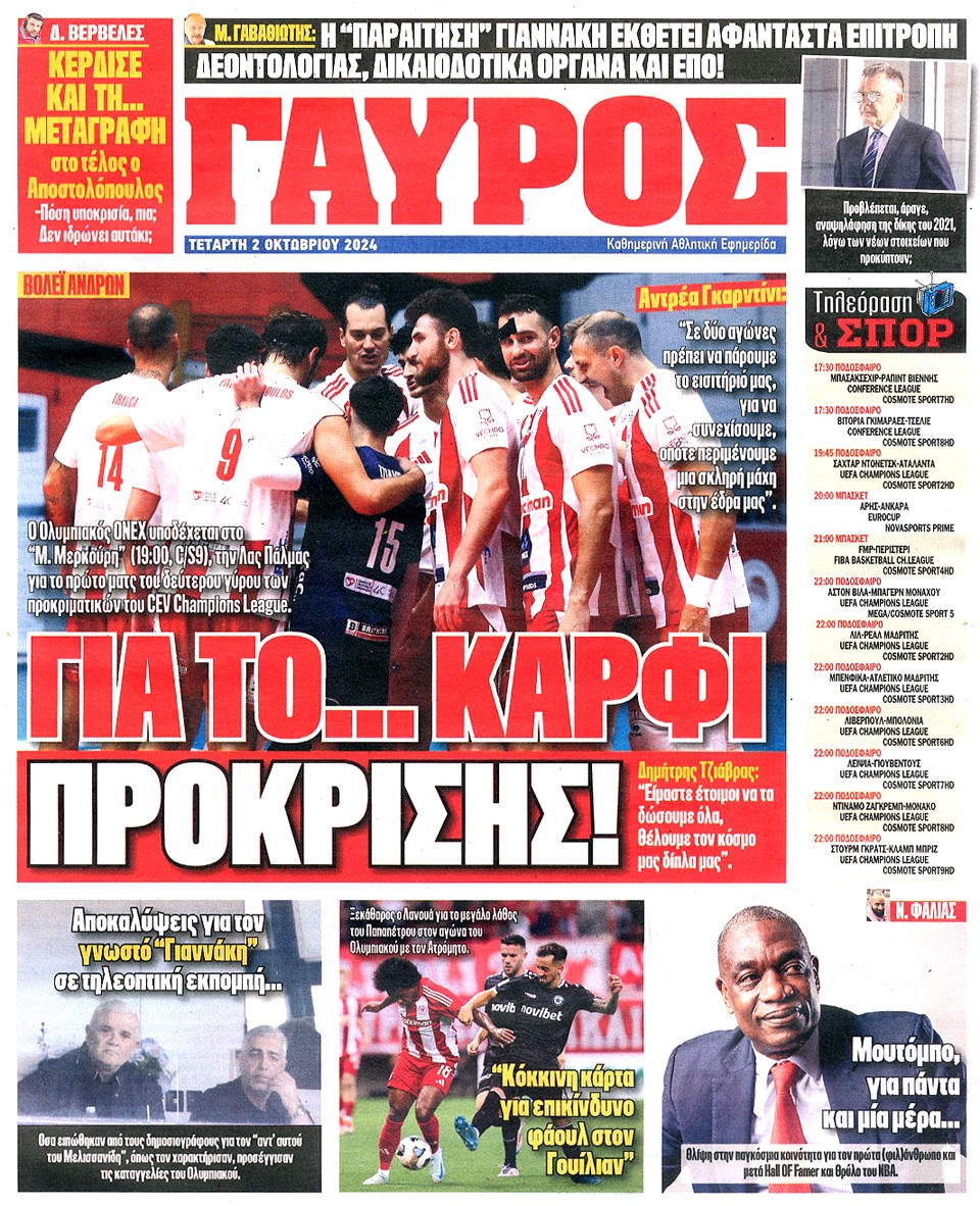 ΠΡΩΤΑΘΛΗΤΗΣ - 02 Οκτωβρίου 2024