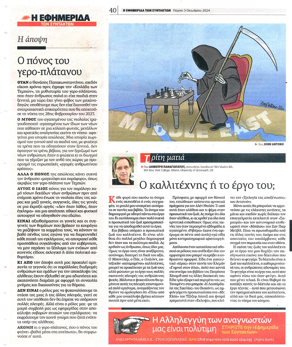 Η ΕΦΗΜΕΡΙΔΑ ΤΩΝ ΣΥΝΤΑΚΤΩΝ - 03 Οκτωβρίου 2024