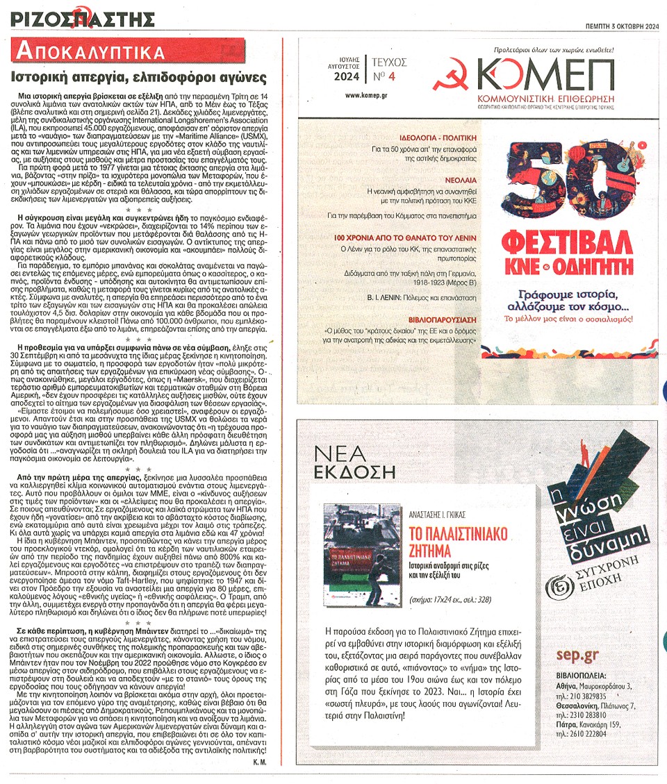 ΡΙΖΟΣΠΑΣΤΗΣ - 03 Οκτωβρίου 2024