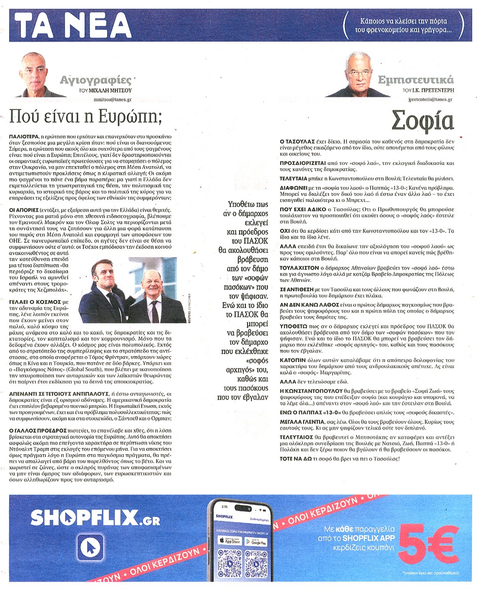 ΤΑ ΝΕΑ - 03 Οκτωβρίου 2024